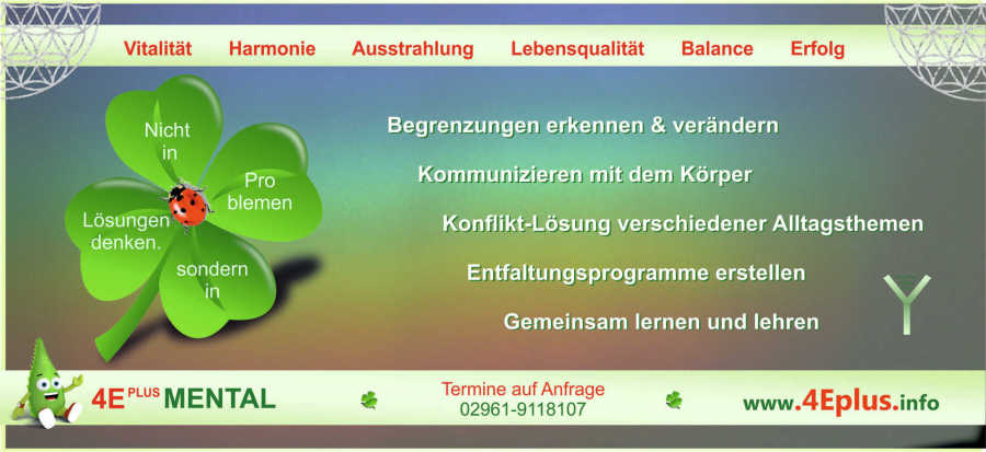 Bitte schreiben Sie uns per email unter info@4Eplus.info wann Sie telefonisch zur Terminabsprach am Besten erreichbar sind.