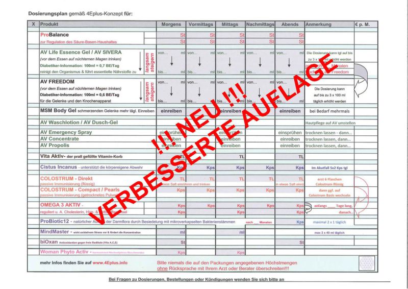 NEU: 5-spaltige 4EplusDOSIERUNGS-PLAN (Druckvorlage zum Download)